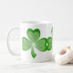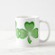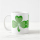 A modern design featuring three shining, sparkling, green shamrocks on a white background. Mug with a customisable design for you to personalise with your own background colour, text, pictures and ideas. Available in all style options. Created using original photographs and digital techniques by Jess Perry.