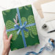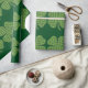 Cute gift wrapping paper features tiny shamrocks on top of a large shamrock, tiled across a dark green background. Great way to present gifts for St. Patrick's Day or to show your Irish!