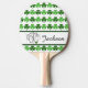 This design features a pattern of green shamrocks and a horse with a horseshoe.