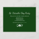 St. Patrick's Day Party green invitation postcard, with a lucky shamrocks design. With customizable typography, you add your own information. Great for planning your festive celebration or gathering.