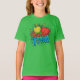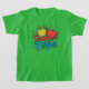 A vibrant shamrock green t-shirt for teenagers celebrating Rosh Hashanah features the caption "Shana Tova" in a lively, festive red and blue font. Above the text, two charming apples—one red and one yellow—are depicted. The combination of the bright green fabric and the colourful apples creates a joyful and eye-catching design, perfect for marking the holiday with style and cheer.