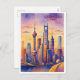 Shanghai Skyline China Travel Watercolor Holiday Postcard