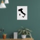 The shape of Italy in black and white. Though, you can add a background colour if you'd like. You can also add a personalised text message to create that perfect gift for your favourite Italian.