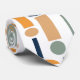 This necktie has a mid-century modern design of ovals and rectangles in patterns repeating in the design.