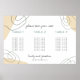 Trendy abstract shapes in dark cream with wavy lines decorate the corners, with informal script typography for your names and header and simplistic typography for the rest for this seating chart. Suitable for a small wedding group of 30 guests with three tables of ten. Easily personalise with your guests' names and you can change the table numbers to your own words if preferred. Try to keep to a similar number of characters, but if you do slip over to another line, you can make the text smaller via the scale down option via the Customise further option. You can also choose this If you wish to change font styles and colours.