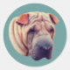 Shar Pei face animal dog photo sticker.  You can use the design tool to add any text you like to personalise this item.  Great gift idea!