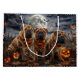 Unleash the spooky spirit with this eerie Halloween design featuring a pack of dogs under a dark, moonlit sky, surrounded by flying bats and glowing pumpkins. Perfect for those who love a touch of frightful fun with their furry friends!