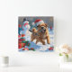 Shar Pei Running in Snow with Christmas Hat Square Wall Clock