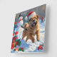 A playful Shar Pei runs happily through the snowy winter scene, wearing a festive red Christmas hat. This delightful design highlights the breed’s signature wrinkles, sturdy build, and loyal personality while capturing the warmth and joy of the holiday season. A charming winter moment full of festive cheer.