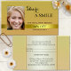 An elegant referral business card featuring your own photo framed by a gold stylised design. Beautiful for a dental hygienist or beautician.
