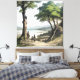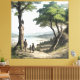 Three travelers gaze upon a tranquil lake nestled between distant mountains, shaded by ancient trees. Rendered in coloured engraving style, the artwork evokes nostalgia, human connection, and inner journey. Classic aesthetics with contemporary soul—perfect for sustainable tourism, education, cultural heritage, or mindful wellness brands.