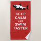 Great humour on a beach towel. Get this towel to a beach and if you meet great white shark in the sea and which is supposed to do a little shark attack... just remember that "keep calm and swim faster" and get back to the land to use your new nice and humourous beach towel. You can customise towel by changing the background colour.