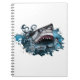 Original design of a shark coming out of the water. Created by using pencils, pens and coloured digitally.