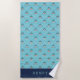 Take a bite out of summer! Adorable personalised beach towel for your little guy features a pattern of cute sharks on a turquoise background, with a name or initial along the bottom.