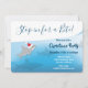 A shark-themed invitation for a Christmas party. The invitation tells your guest to "Stop in for a Bite!". The invitation features a smiling, cute, shark in a Santa Hat. The text can be customised.