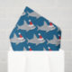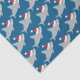 Tissue paper with cute, smiling, sharks in Santa hats.