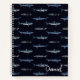 This Shark Invasion pattern has sketch style drawings of Mako, Blue and Black Dogfish sharks on a dark blue and black textured background. I was inspired to create this design by the recent shark sightings at California beaches. Also looks nice by changing the solid blue, custom background colour to white to create a charcoal grey background. Click the CUSTOMIZE button to make any changes. Cool school or office notebook for any shark lover!