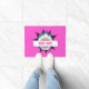 Bright pink door mat featuring a great white shark and the words KEEP OUT! You can change the wording to add your own name, saying, or letters. You can also change the pink background colour to whatever suits your taste.