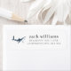 A watercolour shark returns label - perfect for your Ocean themed Birthday stationery!