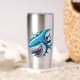 Background: The background is plain and light-coloured, ensuring that all attention remains on the detailed drawing of the shark.