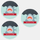 This cute personalised kids' waterproof sticker/label features a navy blue background with an open mouth shark under the light blue water and a shark fin above the water. You can find matching products at my store.
