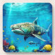 Experience an emotional underwater encounter with this detailed, stylized shark art print. The artwork showcases the ocean's apex predator gliding through sun-drenched deep blue light, contrasted by vibrant, colorful coral and tropical fish. This captivating scene masterfully blends power with the serene beauty of the marine environment, making it a compelling piece of ocean-themed decor. This truly unique design began with advanced AI generation and was then meticulously edited by a skilled artist to enhance its uniqueness, texture, and creative depth. This process ensures a distinctive, high-quality marine art print. Perfect for anyone who loves the ocean's mystery and power. Place your order today and embrace the joy of owning this exceptional piece!