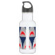 Monogramed shark pattern water bottle in navy red and shark grey.
