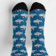 Enjoy these fun shark Christmas socks during the holiday and all year round. They feature cartoon sharks in Santa hats as a pattern on a blue background. Simply add them to your cart, get them home, then add the joy of sharks to your already fun Christmas!