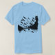 Hammer head shark school under water world. Black Illustration on blue shirt.