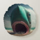 Shark sculpture on the beach round cushion