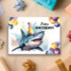 Make a splash at your loved one's birthday with this shark birthday card featuring a party hat-wearing Great White Shark! The watercolor illustration captures the essence of the majestic sea creature in a playful and cheerful way. It is perfect for the birthday boy or girl who loves marine life, shark movies, deadly ocean fish, aquariums, summer, surfing, or the beach.