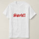 Shark!!! Right behind you! READ MY SHIRT! Celebrate Shark Week by warning everyone who sees you that it's really not the best time to go swimming. The blood-red font says it all, especially since there are three exclamations marks. That's right: three.