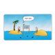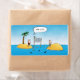 Your serve! This funny cartoon shows two castaways playing volleyball on their own personal islands with a sea of sharks waiting for one to come after a stray ball! With the caption "Your Serve." Funny and beautiful with a cool blue sea and sky.