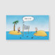 Your serve! This funny cartoon shows two castaways playing volleyball on their own personal islands with a sea of sharks waiting for one to come after a stray ball! With the caption "Your Serve." Funny and beautiful with a cool blue sea and sky.