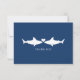 Wedding thank you card with navy blue background and white shark silhouette and a heart.