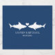 Shark wedding beer labels in a  classic navy blue background with white shark silhouette with a heart, couple's names and date.