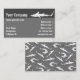 Shark business card. Custom text. Sharks and hooks icons seamless pattern background at back side.