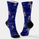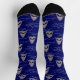 Socks for shark lovers patterned with great white sharks and ocean waves over navy blue