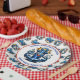 Boy's birthday party in a nautical or maritime theme paper plates. Blue, red and yellow sharks, whales and anchors. Add child's name in the personalize area.