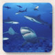 Coaster set shown with a photo print of sharks in the deep sea. Customise this item or buy as is.