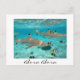 Postcard of blacktip reef sharks and butterfly fish during scuba diving the clear blue lagoon of the pacific island of Bora Bora, near Tahiti in French Polynesia with the text: 'Bora Bora'.
