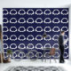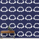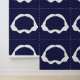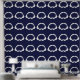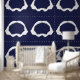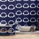 Shark fans will love this peel and stick wallpaper patterned with Great White Shark jaws on a navy blue background