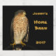 Easily personalise the text on this cool beer bottle label which features a Sharp-Shinned Hawk perched on the top of a bird feeder hoping to catch a meal. He has a hunter's stare. His yellow talons and orange eyes are prominent. He has lovely rust and cream bands on his breast, white and black striped tail feathers, and a grey back. This hawks prey is mostly small birds. Although the "Sharpie" is the smallest hawk in North America, he is a very fierce predator. Perfect for your home brewed beers such as lager, ale, stout, pilsner, bock, Oktoberfest, porter or weissbier.