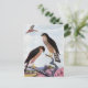 Sharp-shinned hawks perch on a dead branch above pink-flowering trees in this vintage illustration for a 1922 bird book.