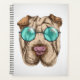 This design features a portrait of a Sharpei dog wearing teal tinted glasses.