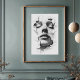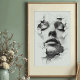 This deeply emotive black and white portrait captures a human face in a moment of profound introspection or raw vulnerability, rendered with an extraordinary etched and line art technique. The detailed lines create a textured, almost topographical map of the face, with eyes closed in a gesture of contemplation or release. What makes this piece truly unique is the surrounding "shattered" or "torn paper" effect, as if the image is breaking through a surface, adding layers of conceptual depth and visual drama. The monochrome palette accentuates the intricate detail and stark contrasts, highlighting the expressive contours and the raw emotion conveyed. This captivating artwork is perfect for those who appreciate powerful figurative art, unique illustration styles, and a piece that speaks to inner worlds.