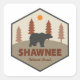 Shawnee National Forest lies between the Mississippi and Ohio rivers in southern Illinois. This outdoorsy graphic has a bear and trees.