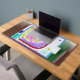 LOVE this desk mat! It's large! It fits across my desk. No need for a small mouse pad now! Color and print are excellent. Quality seems to be excellent too. Delivery was about 3 days sooner than expected. I think this is one of my favorite Zazzle products! Excellent. The color is vibrant and true to what I expected.