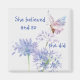 "She believed and so she did!" Inspirational Quote with blue garden flowers and Butterfly with encouraging saying for motivation