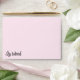 She Believed She Could and So She Did Envelope is light pink and coordinates with the card. On the front bottom left section of the envelope are the words, "she believed", hand drawn and painted with watercolor in the same whimsical style as the card. The back closure flap has the name and return address.